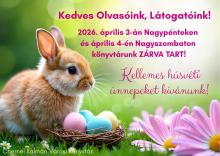 Könyvtárunk a húsvéti ünnepkörben Nagypénteken - 2026. április 3-án - és Nagyszombaton - 2026. április 4-én - zárva tart!